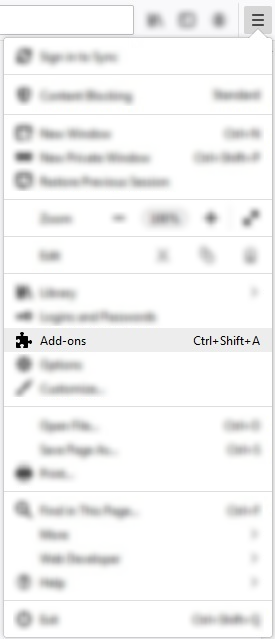 Click on the Firefox menu icon at the top-right corner of the browser and click "Add-ons"